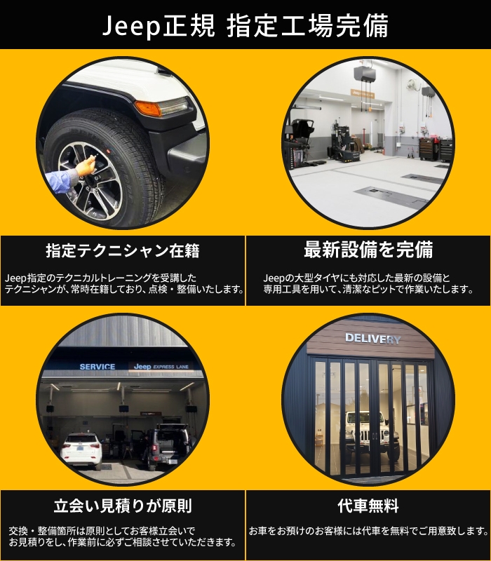 Jeep車を知り尽くした整備士が点検・整備を実施いたします。